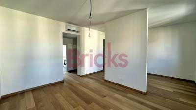 L´ingresso conduce al grande soggiorno e alla cucina abitabile con balcone, completamente attrezzata con forno, microonde, lavastoviglie, lavatrice e frigorifero. Dal corridoio si accede alla zona notte composta da una camera da letto matrimoniale con balcone, un primo bagno cieco, una seconda camera da letto matrimoniale con bagno en suite finestrato. I pavimenti sono in parquet e i bagni rifiniti con piastrelle in gres porcellanato. L´appartamento viene proposto arredato di sola cucina. Dotato di riscaldamento centralizzato, boiler elettrico per l’acqua calda sanitaria e impianto di aria condizionata. L´unità è disponibile per la locazione.